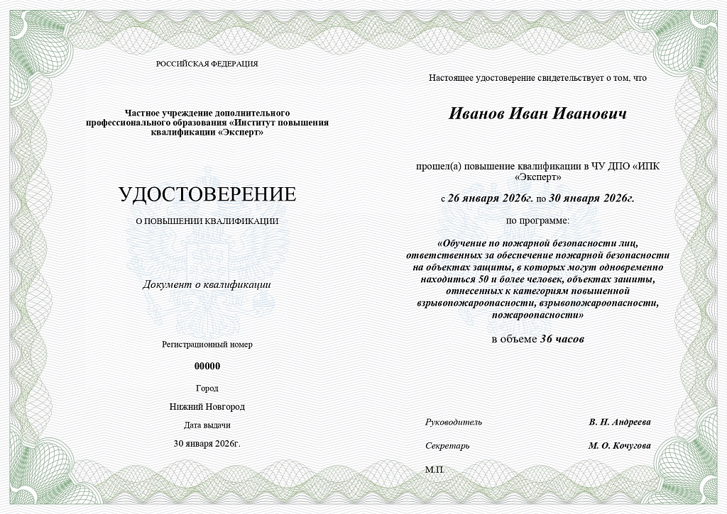 Обучение по программе «Обучение по пожарной безопасности лиц, ответственных за обеспечение пожарной безопасности на объектах защиты, в которых могут одновременно находиться 50 и более человек, объектах зашиты, отнесенных к категориям повышенной взрывопожароопасности, взрывопожароопасности, пожароопасности» (в соответствии с Приказом МЧС РФ от 5 сентября 2021 г. № 596»).